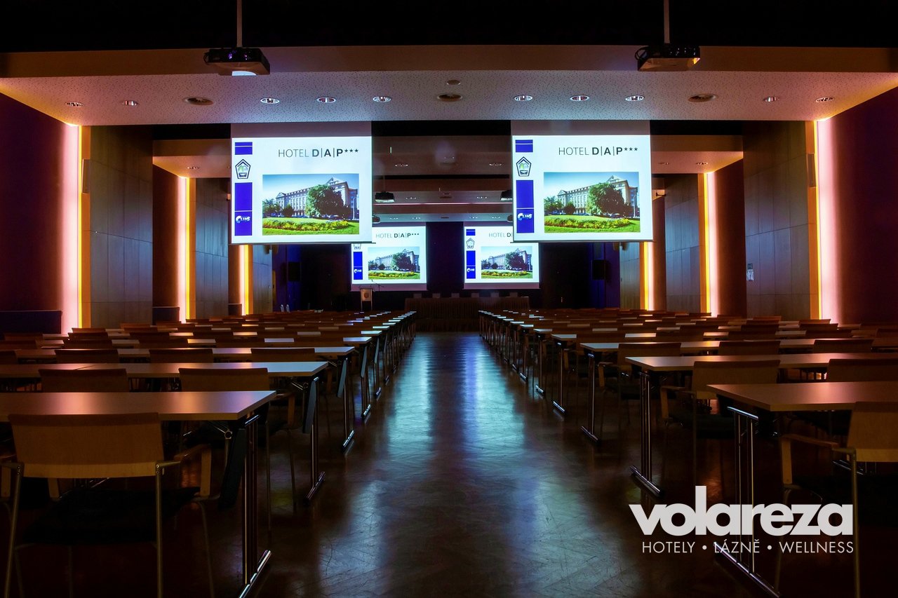 In Hotel DAP you will find a fully air-conditioned conference hall with a capacity of up to 300 people and a separate entrance from Buzulucká Street. It allows variable arrangement and is equipped with the latest AV technology with 6 screens. Catering services can also be ordered together with the conference hall. So you can organize complete conferences, including meals.