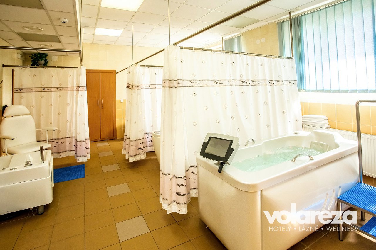 Natural carbonic minerall water baths, bubble baths, whirlpool baths, iodine baths, aromatic baths, solfatan baths, peat extract baths, walk baths, dry carbonic baths, the Scottish showers, underwater massages, pool exercises, peat wraps, fango wraps and paraffine wraps.