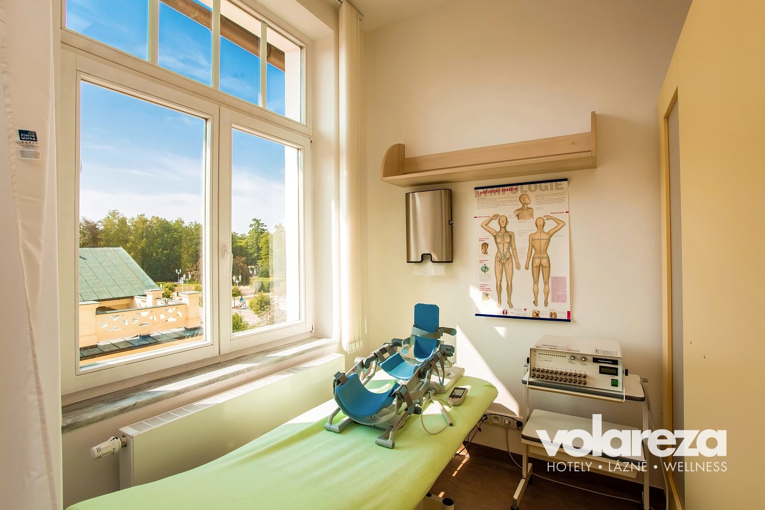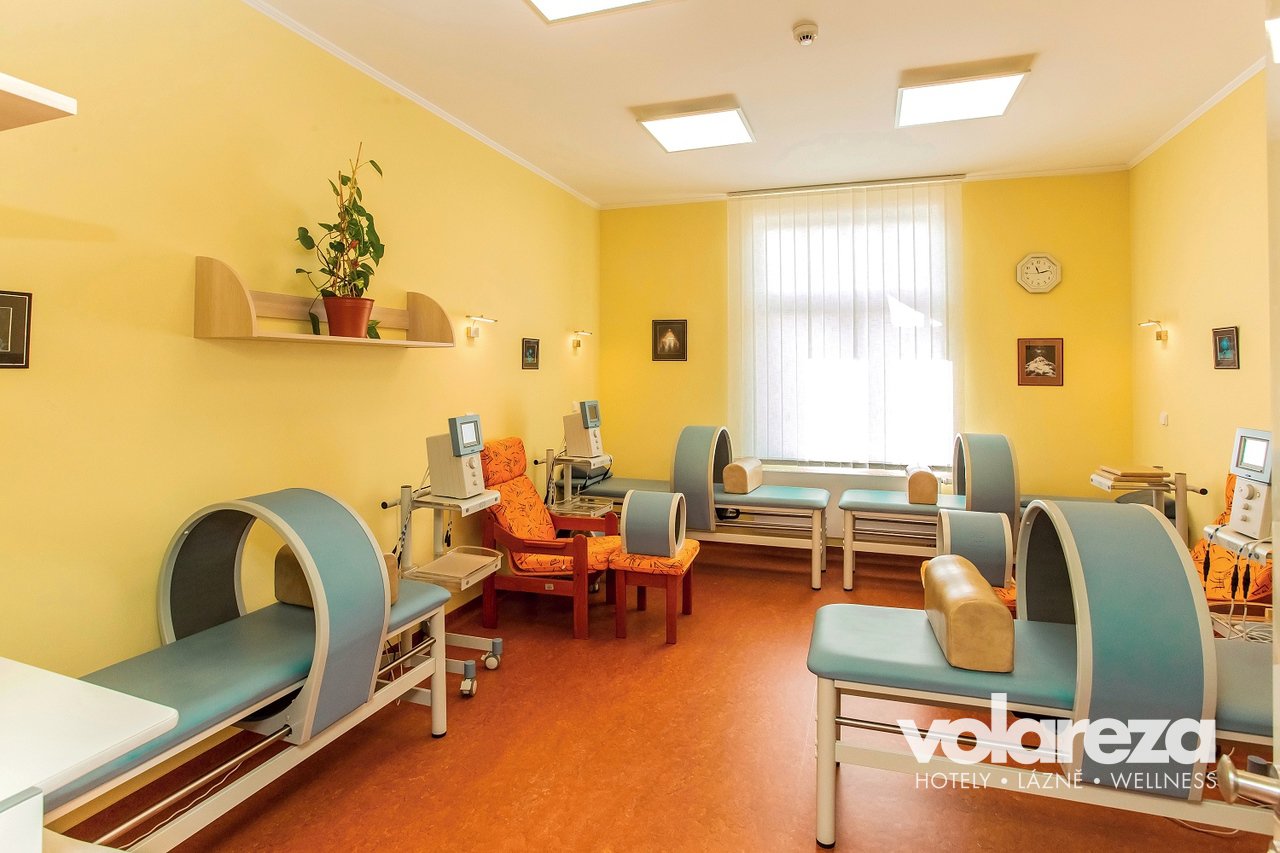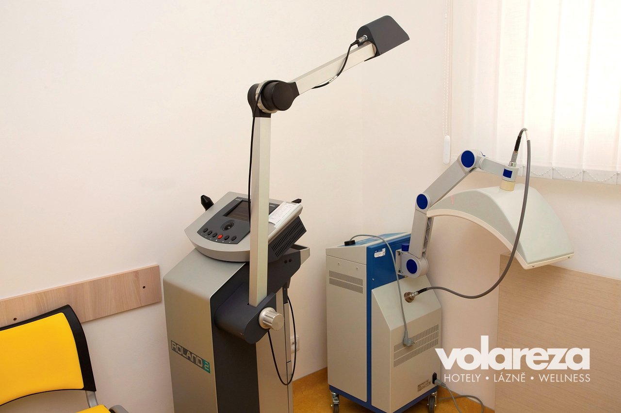 Diathermy, laser, electrotherapy, magnetic therapy, shock wave, ultrasound, infrared light (solux), distance electrode, biolamp, biostimulation, gas injection and oxygen therapy. EKG and TK examination also available within the stay.